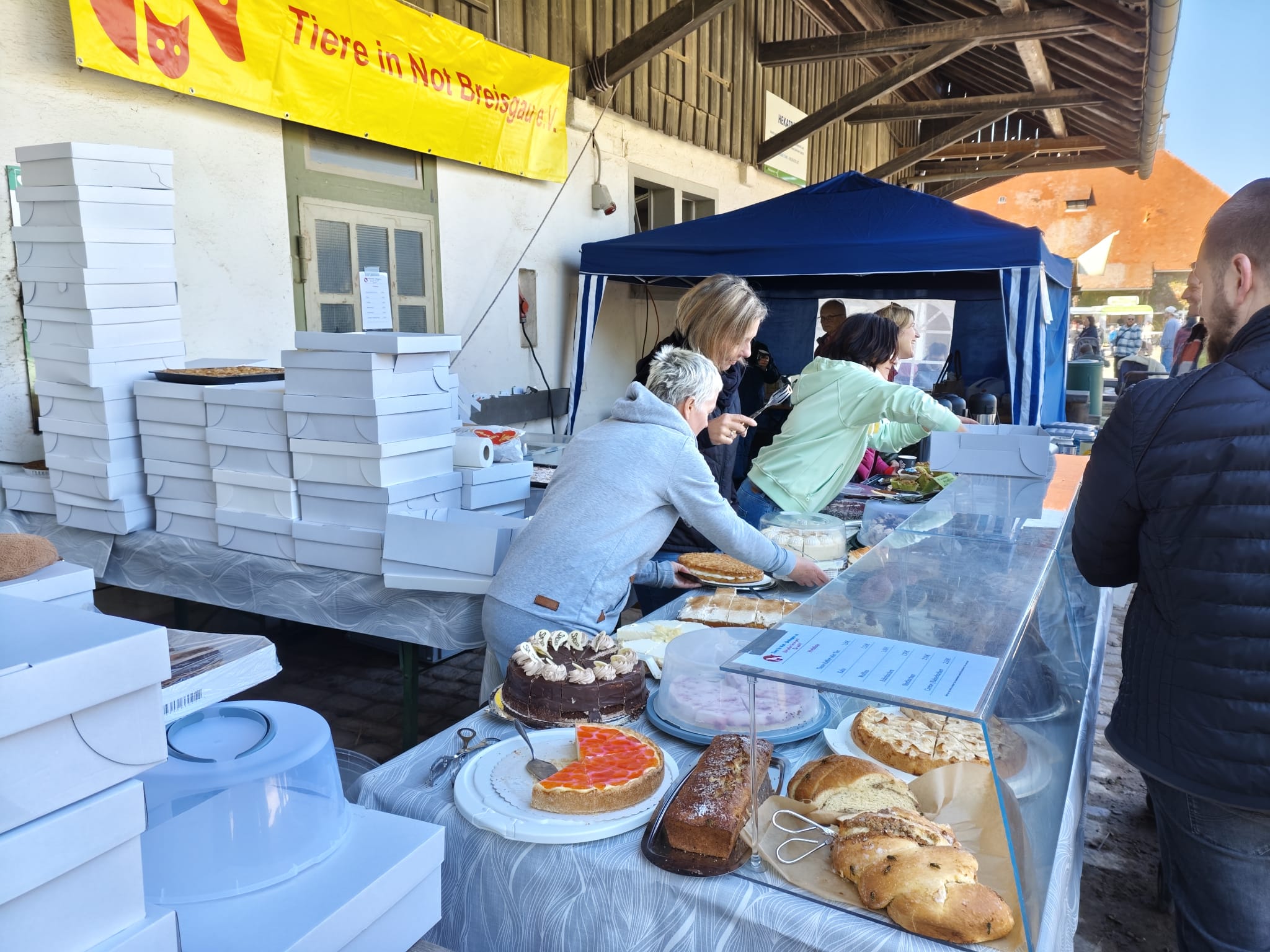 Unsere verbleibende „Rumpfmannschaft“ hatte an der Kuchentheke alle Hände voll zu tun. Während wir im letzten Jahr noch mit hunderten von Wespen kämpften, wollten diesmal die Besucherströme einfach nicht abreißen. Über 100 Kuchen und Torten wurden verkauft, sodass am Ende buchstäblich kein Krümel mehr übrig war – eine enorme Leistung unseres Teams.