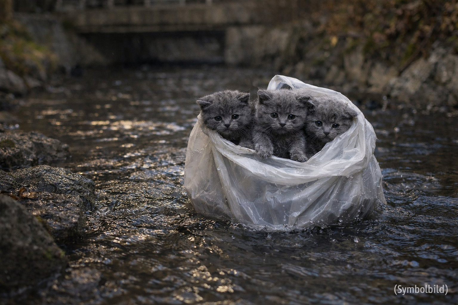 Die Zeugin handelte umgehend, kletterte trotz Kälte in den Bach und holte die Tüte heraus. In dieser befanden sich drei Katzenbabys, welche sie unverzüglich in tierärztliche Obhut brachte. Bei den drei Kätzchen handelt es sich möglicherweise um sogenannte "Britisch Kurzhaar"-Katzen mit grauem Fell. Die Tiere sind aufgrund der Rettung durch die Zeugin und der tierärztlichen Versorgung inzwischen wieder wohlauf.
